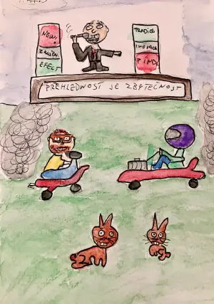 Přiblížili se ale firemní narozky, který firma ráda slavila. To hlavně proto, že majitel moc rád mluvil. Ale co měl ještě radši, bylo se poslouchat. Kdo ho ale poslouchat nechtěl, jsou jeho zaměstnanci. Dodnes si pamatuju ty jeho šíleně vyčerpávající porady a jeho projevy. Ego, ego, pindy, pindy a tak. Jenže to jsem ve chvíli, kdy mi přistála pozvánka na výročí v mailu ještě nevěděl. Vyjeli jsme na motokáry a takový ty pidi motorky kousek před Brnem. Naučil jsem se tam, že atrakce nemusí být nutně příjemný zážitek. Tlačí tě helma, jsi skrčenej, a místo toho aby to trochu jelo, dělá to jen kravál a smrad. A po zábavě, následovala přednáška. Klasika. Bez veřejného onanování nad svým egem to prostě nejde.